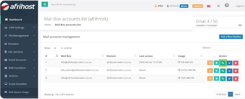 If you would like to know How to update your email password in cPanel please read our Help Centre article for further assistance.