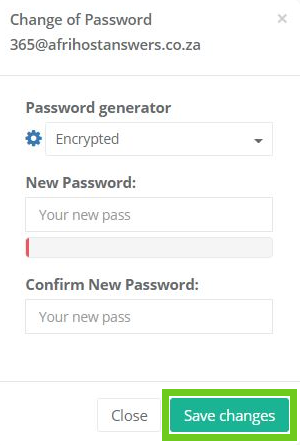- A window will pop up, enter your new password and select ‘Save changes’.