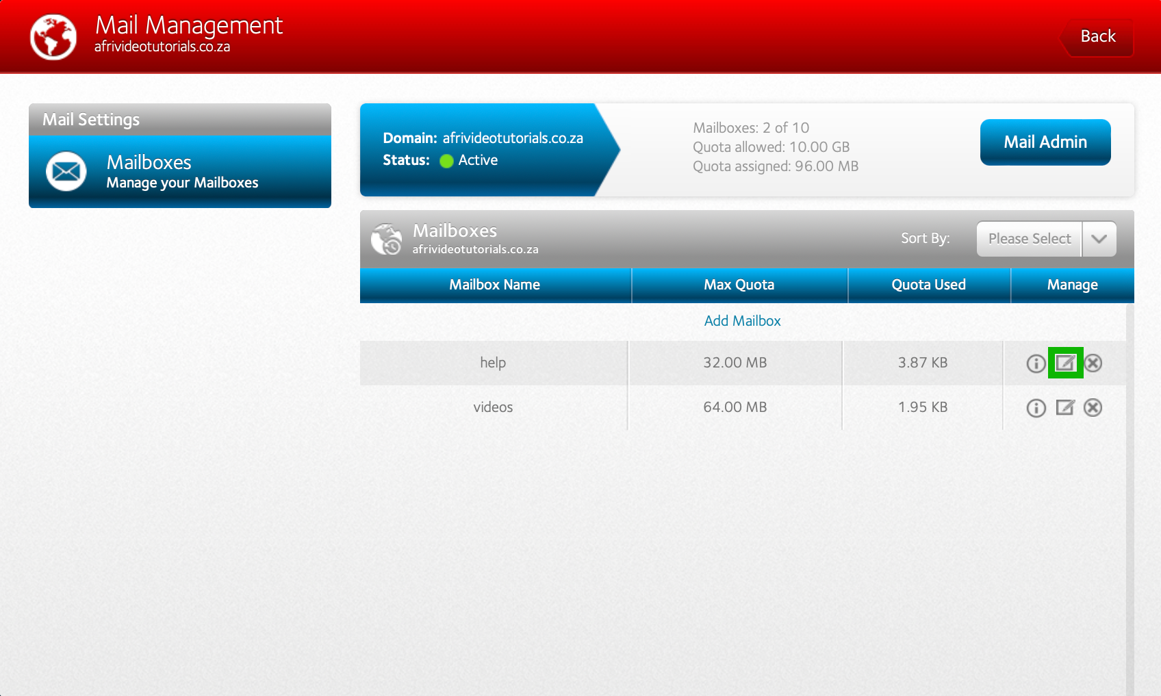 - In the list of your email accounts, select the 'edit’ icon in line with the email account you wish to update.