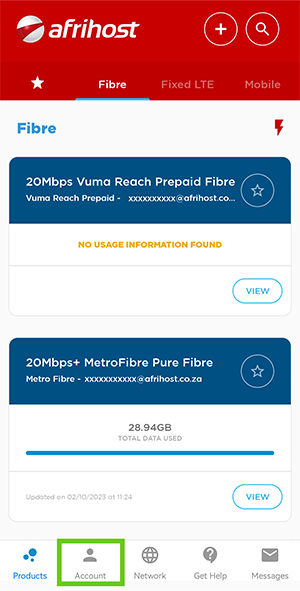 Our Afrihost Mobile App allows you to easily and conveniently update your banking account payment information.