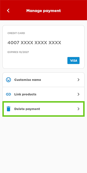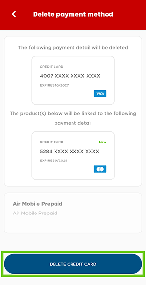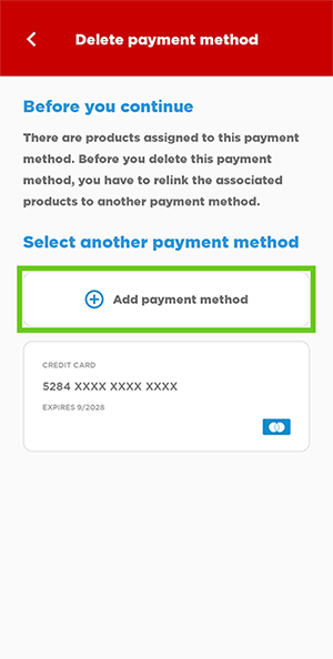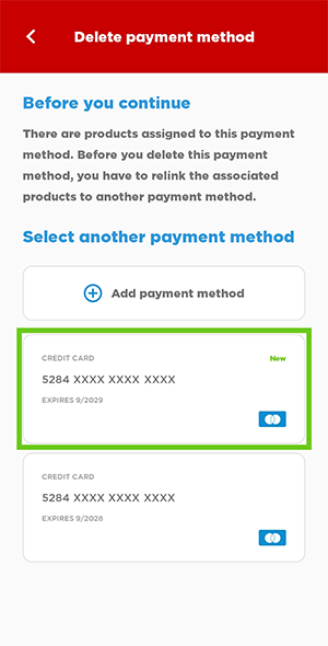 - Confirm that the correct payment details are being deleted and that the products will be linked to the newly added payment information.
