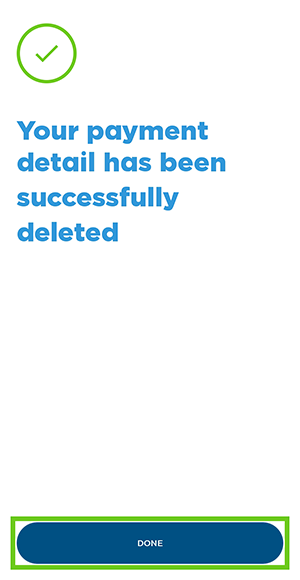 - Lastly, you will see a success message confirming that the old card was deleted successfully. Select the ‘Done’ button to complete the process.