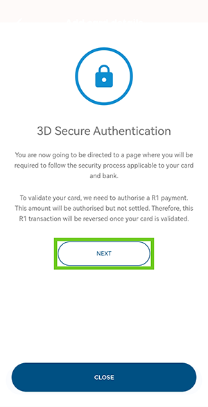 - At this stage, you will be required to verify your card details. Select the ‘Next’ button and follow your bank’s prompts to verify your card.