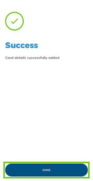 - Once the card is verified, you will see a success message. Select ‘Done’ to proceed to the next step.