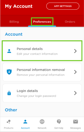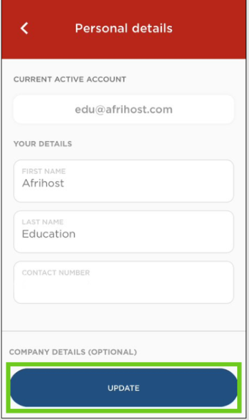 Our Afrihost Mobile App allows you to easily update your personal account information.