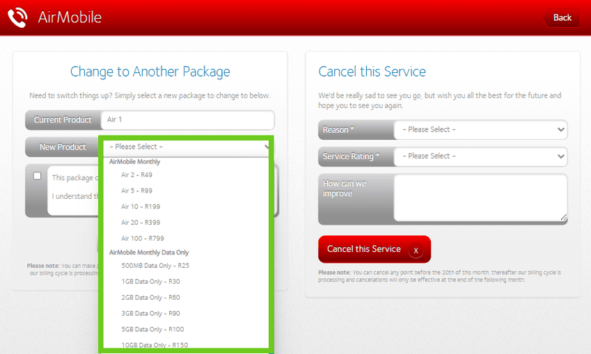 How to Upgrade or Downgrade your Airmobile package in ClientZone