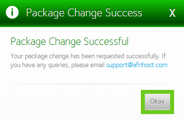 - Accept the terms and click on the ‘Change Package’ button to confirm your package change.