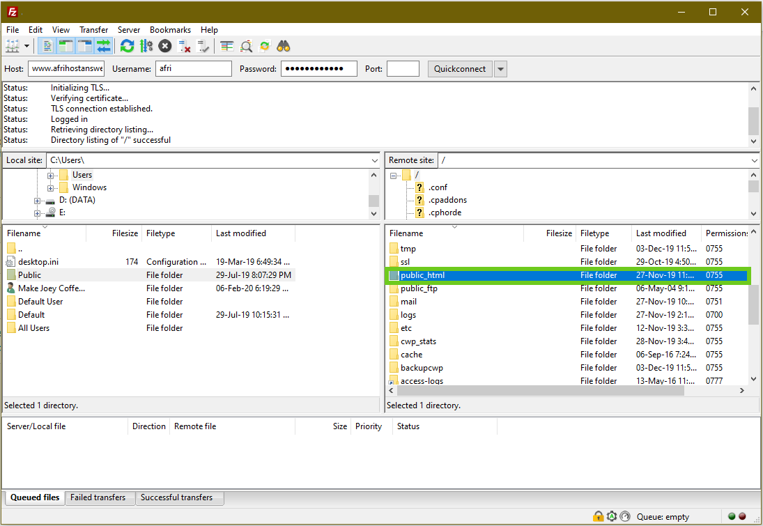 The uploaded files will now appear in the 'public_html folder''.