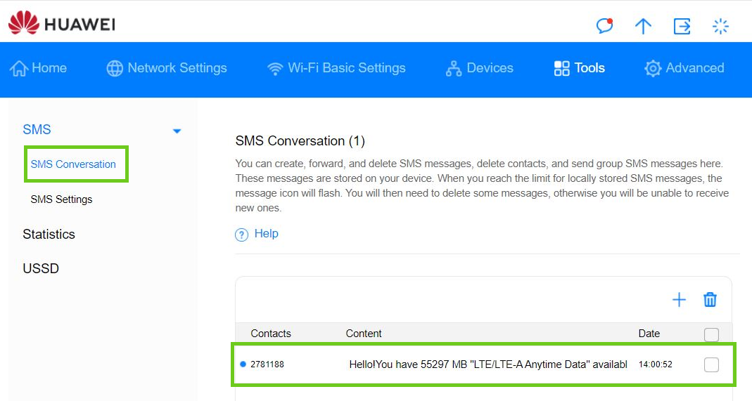 - Under ‘SMS Conversation’, click the response message to open it and view the available balance.