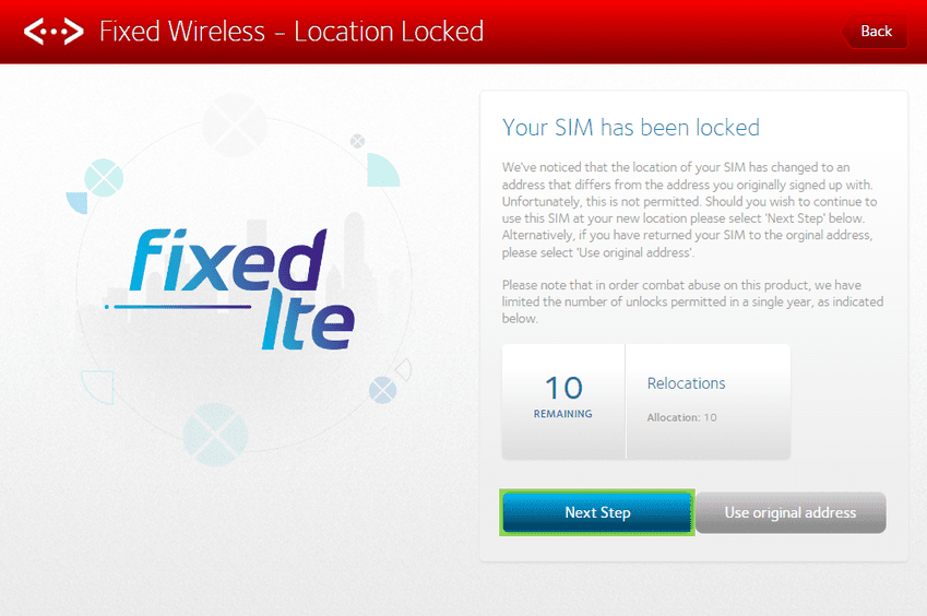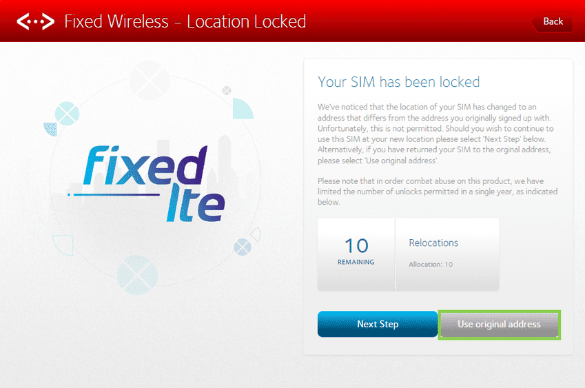 Pure LTE packages can be locked due to the use of an incorrect router devices or the location changes without updating your provider. Pure LTE is designed to be used in one location, and the SIM card is locked to the location you provide and will only work at this location. Below we'll discuss how to change this location.