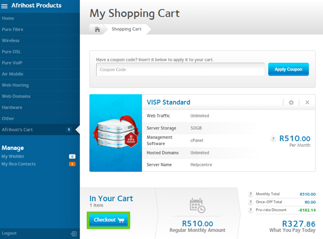 - Confirm the details of your order in the cart are correct and select ‘Checkout’ to complete the order.
