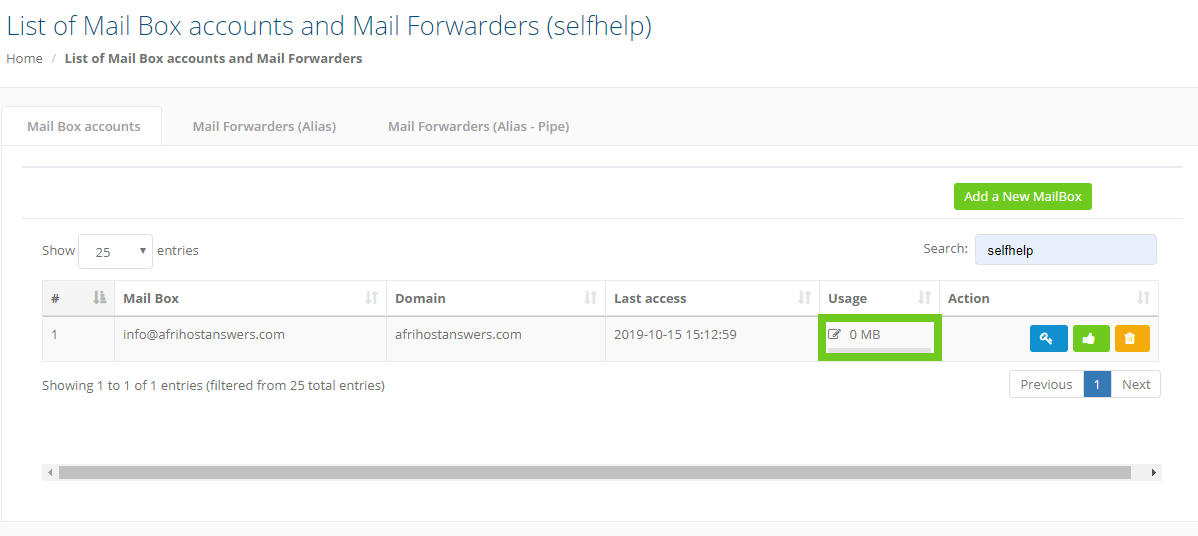 - Here you will see a list of your Mailbox Accounts